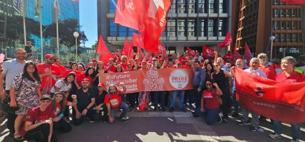 ‘’Podemos garantir direitos e avançar na jornada de 4 dias ou ficar inertes diante da precarização das relações de trabalho. O Sindicato acredita que juntos construímos o futuro que queremos: com emprego decente, melhores condições de trabalho, 4 dias de jornada, fim do assédio moral e a regulamentação do sistema financeiro’’.